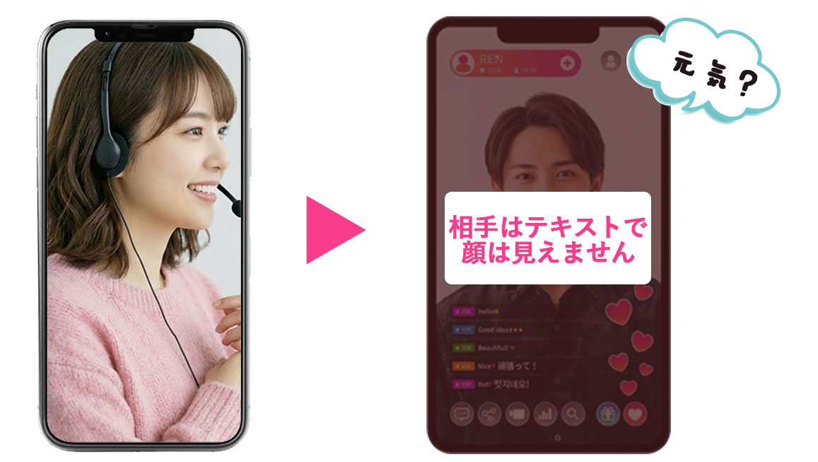 お客様と1対1で、カメラとマイクを使いながら映像と音声でコミュニケーションを取るスタイルです。